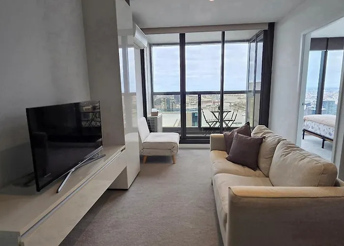 This apartment lies next to the easy-to-access Docklands Stadium.